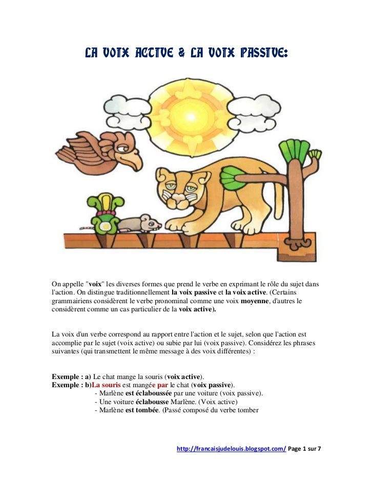 Encore une anim pour le fun (mine de rien sa prend beaucoup de temps rien que sa) faut trouver le son pi faire les image pi synchro, 35 images sa va c'est paC'est les mêmes qui hurlent à la mort contre la vénerie alors que c'est exactement ce dont la nature a besoin Que chacun retrouve sa place dans la chaine alimentaire On veut bien SAVOIR que les chats mangent les souris, mais on ne veut pasLe chat mange la souris La souris est mangée par le chat wwwpodcastfrancaisfacilecom PASSIF 1 Les enfants achètent les bonbons →Les bonbons sont achetés par les enfants 2 La mère gronde l'enfant →L'enfant est grondé par la mère 3 Le professeur félicite les élèves →Les élèves sont félicités par le professeur 4 Le chien boit l'eau →L'eau est bue par le chien